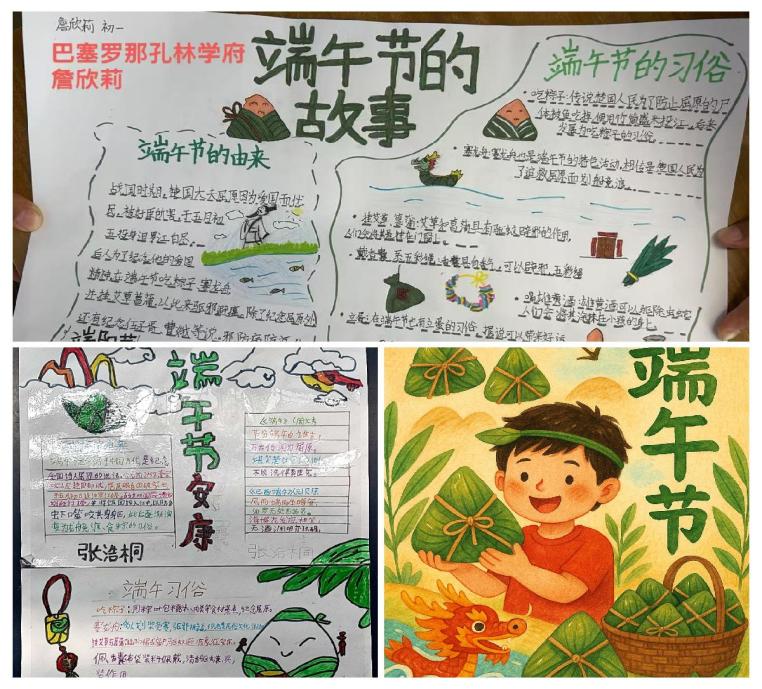 編者按:由中國僑聯(lián)與河南省僑聯(lián)聯(lián)合主辦的2025“親情中華·童心歡暢”六一主題營——中原文化尋根網(wǎng)上營活動收到一大批海內(nèi)外華裔青少年們的創(chuàng)意作品。本期為第五課“黃河之魂?豫見未來”部分作品,小營員們發(fā)揮創(chuàng)造力以新穎別致的形式,向我們展示了對端午品粽子、劃龍舟等民俗的理解和對中國高科技產(chǎn)品的認(rèn)同。