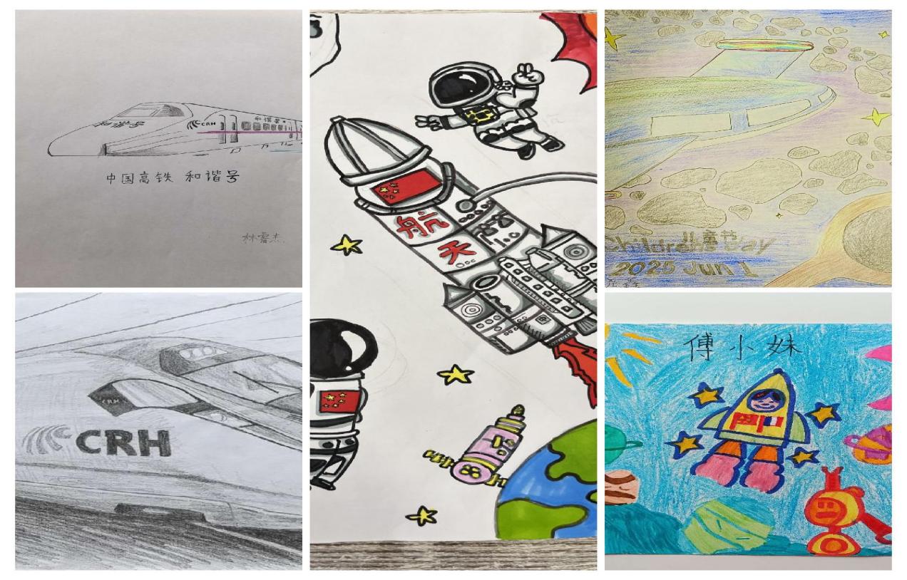 還有的小營員描畫了中國高鐵、大飛機(jī)、航天飛船等高科技產(chǎn)品,抒發(fā)了對祖(籍)國日新月異發(fā)展的自豪之情。