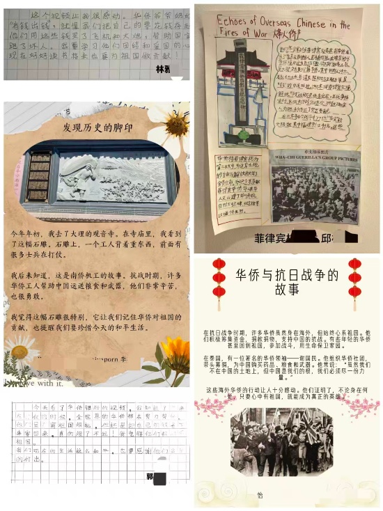 “在抗日戰(zhàn)爭(zhēng)時(shí)期,許多華僑雖然身在海外,但始終心系祖國。他們積極籌集資金,捐款捐物,支持中國的抗戰(zhàn)。有些年輕的華僑甚至回到祖國,參加戰(zhàn)斗,用生命保衛(wèi)家園”,來自泰國絲路國際教育的怡同學(xué)表示,“這些海外華僑的行動(dòng)讓人十分感動(dòng)。他們證明了,不論身在何處,只要心中有祖國,就能成為真正的英雄。”泰國絲路國際教育的李同學(xué)說:“我們要記住華僑對(duì)祖國的貢獻(xiàn),也提醒我們要珍惜今天的和平生活。”意大利新玉語言學(xué)校林同學(xué)表示:“我要學(xué)習(xí)他們團(tuán)結(jié)和愛國的心,現(xiàn)在好好讀書,將來也要為祖國作貢獻(xiàn)!”
