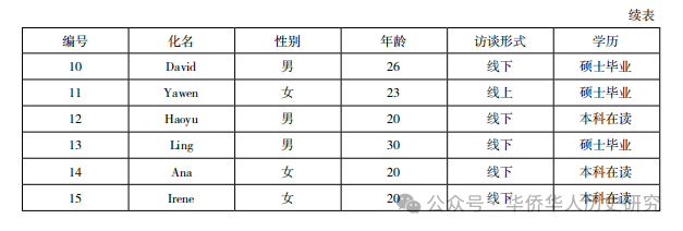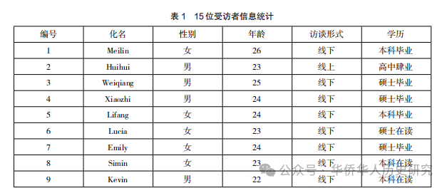 本研究采用深度訪談、個(gè)案研究和民族志方法,實(shí)施時(shí)間為2020—2024年。研究流程包括三個(gè)階段:一是通過深度訪談,與1.5代華人移民展開深入交流,并在訪談后保持聯(lián)系;二是通過個(gè)案研究,參與受訪者的日常生活,近距離觀察和分析其身份認(rèn)同的流動(dòng)性與文化適應(yīng);三是利用民族志的寫作形式,以深描(thick description)的方式展現(xiàn)1.5代移民的身份流變路徑與機(jī)制。
