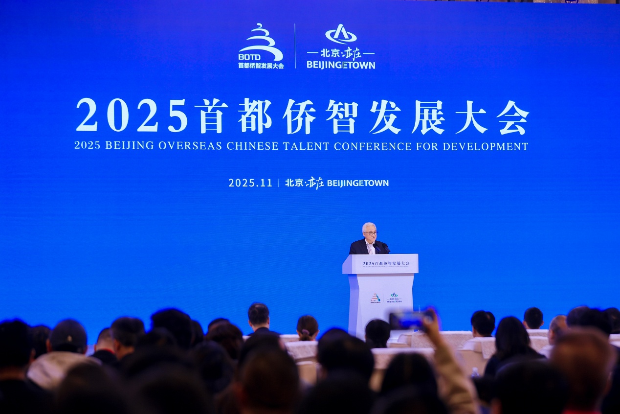 11月5日,2025首都僑智發展大會主場活動在京舉辦。中國僑聯黨組成員、副主席高峰,北京市委常委、北京海外聯誼會會長馬駿,北京經濟技術開發區工委副書記、管委會主任王磊出席并致辭。諾貝爾物理學獎得主安德烈·海姆(Andre K.Geim)通過視頻方式致辭。北京市僑聯黨組書記周景曉主持大會。中國僑聯兼職副主席郭啟民,北京海外聯誼會副會長王都偉,中國科學院院士、北京市僑聯主席陸林等出席活動。大會以“僑聚智慧 智啟未來”為主題,匯聚海外僑界院士、專家學者、高科技企業代表、僑界社團負責人等600余人參會。