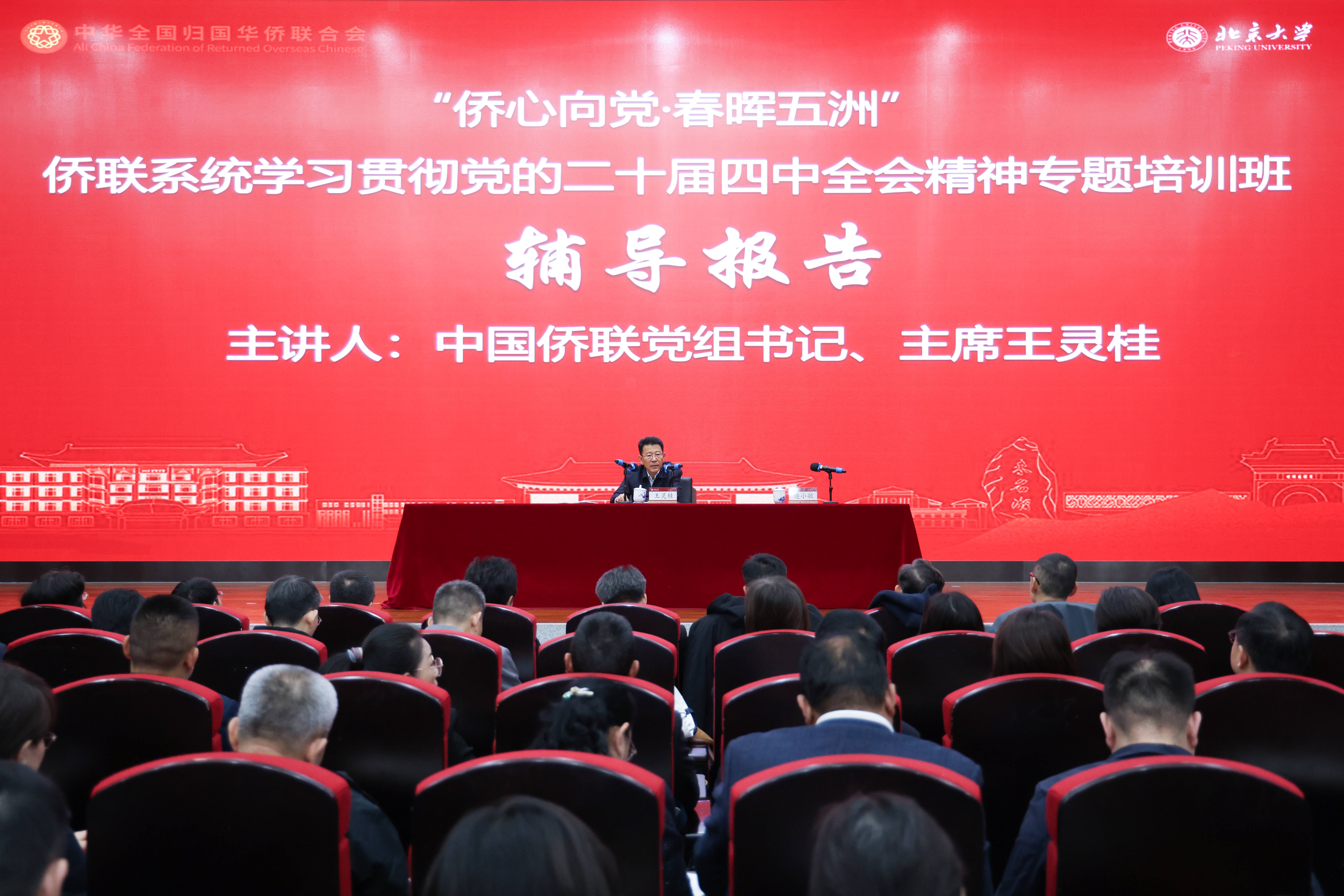 11月11日上午,“僑心向黨·春暉五洲”僑聯(lián)系統(tǒng)學(xué)習(xí)貫徹黨的二十屆四中全會精神專題培訓(xùn)班在北京大學(xué)開班。中國僑聯(lián)黨組書記、主席王靈桂出席開班式并作動員講話和輔導(dǎo)報告。中國僑聯(lián)黨組成員、副主席,直屬機關(guān)黨委書記連小敏主持開班式。北京大學(xué)黨委副書記、統(tǒng)戰(zhàn)部部長姜國華致辭。