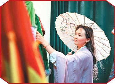 近日,一名學生在吉爾吉斯斯坦奧什國立大學孔子學院挑選晚會上用的服飾。新華社記者 李任滋攝
